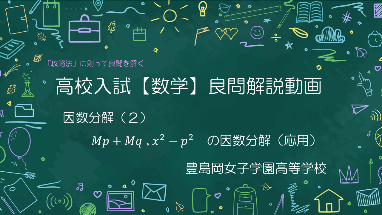 非常によく出題される \(Mp+Mq\) (共通因数でくくる)、\(x^2-p^2\) (2乗 - 2乗の形)の因数分解について考えていきましょう。