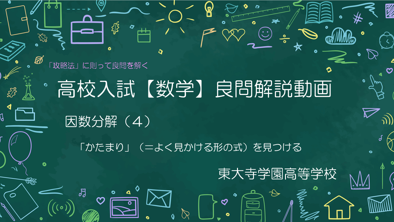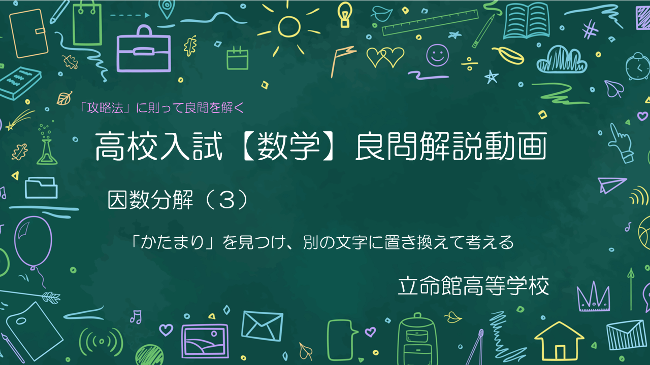問題の中に隠れている「かたまり」を、うまく見つけて式を変形する、という形の因数分解の解き方について考えて行きましょう。